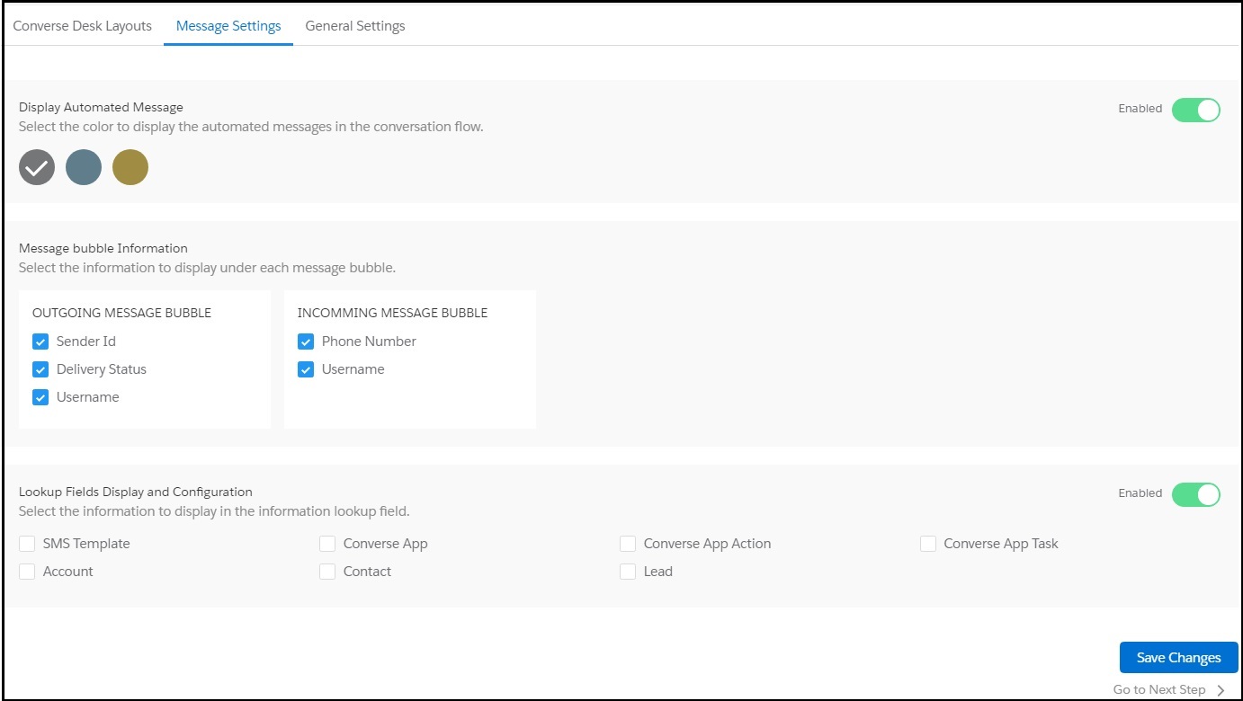 - Click Save Changes at the bottom of the Message Settings tab page.